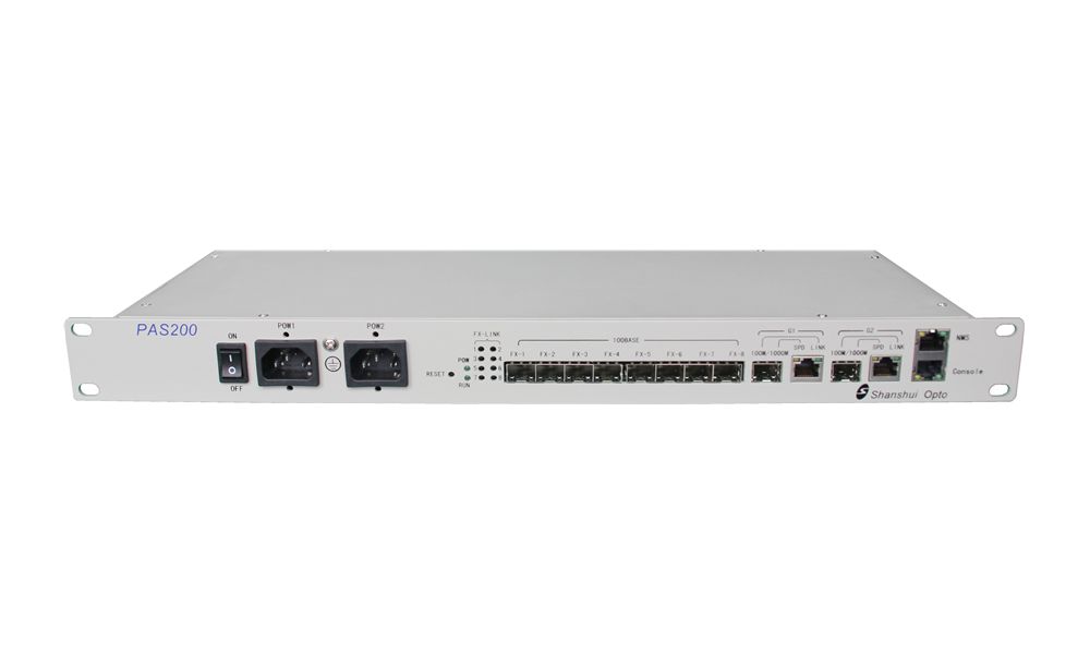 PAS200是新一代千兆智能光纖收發器,滿足用戶業務光纖接入。提供 2 個以太網千兆光口以及豐富的以太網千兆電口,滿足用戶多業務、高質量傳輸要求。適用于最后 1 公里以太網業務接入,可應用于企事業單位、金融系統、網吧、院校、連鎖機構等。